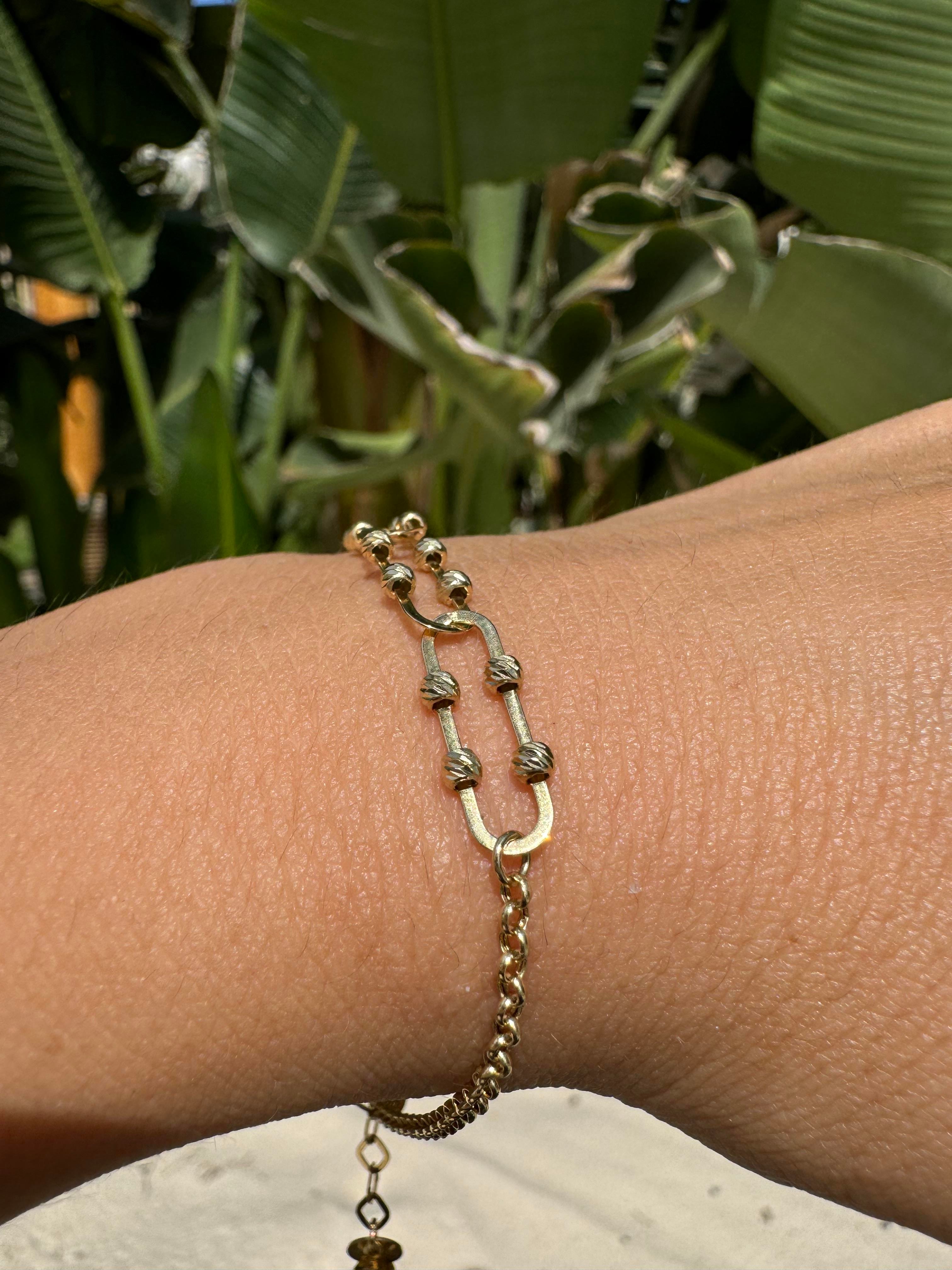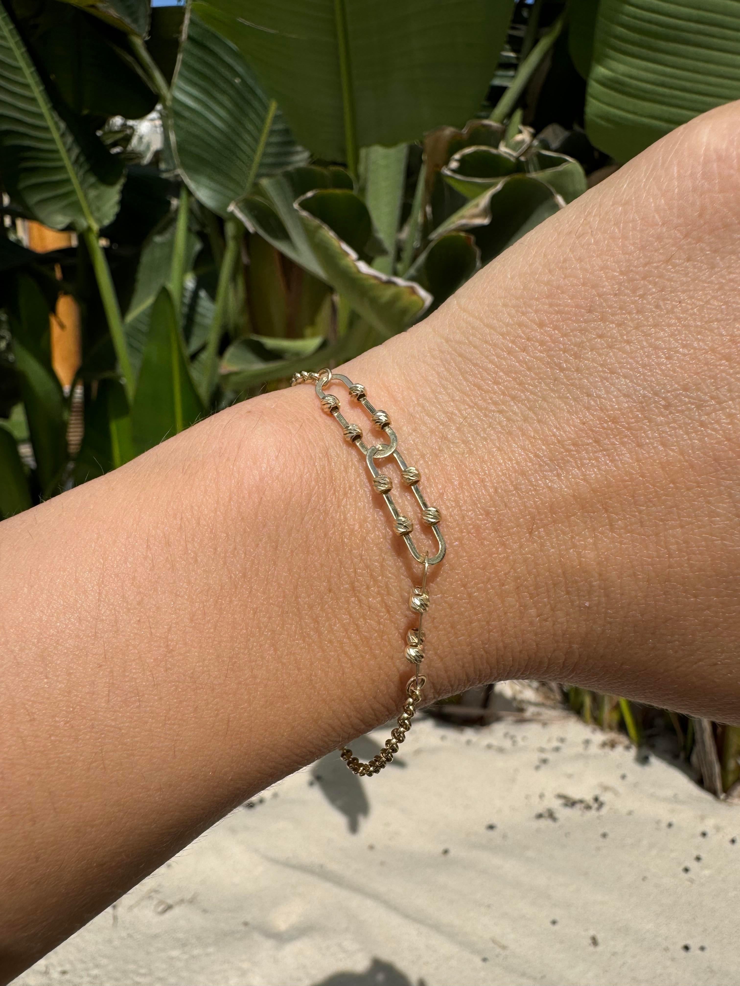 Minimalist tasarımıyla öne çıkan bu bileklik, incelikle işlenmiş ataç detayıyla zarif bir dokunuş sunar. Her türlü kıyafetle mükemmel uyum sağlayan bu bileklik, günlük hayatta ve özel davetlerde şıklığınızı tamamlar.
