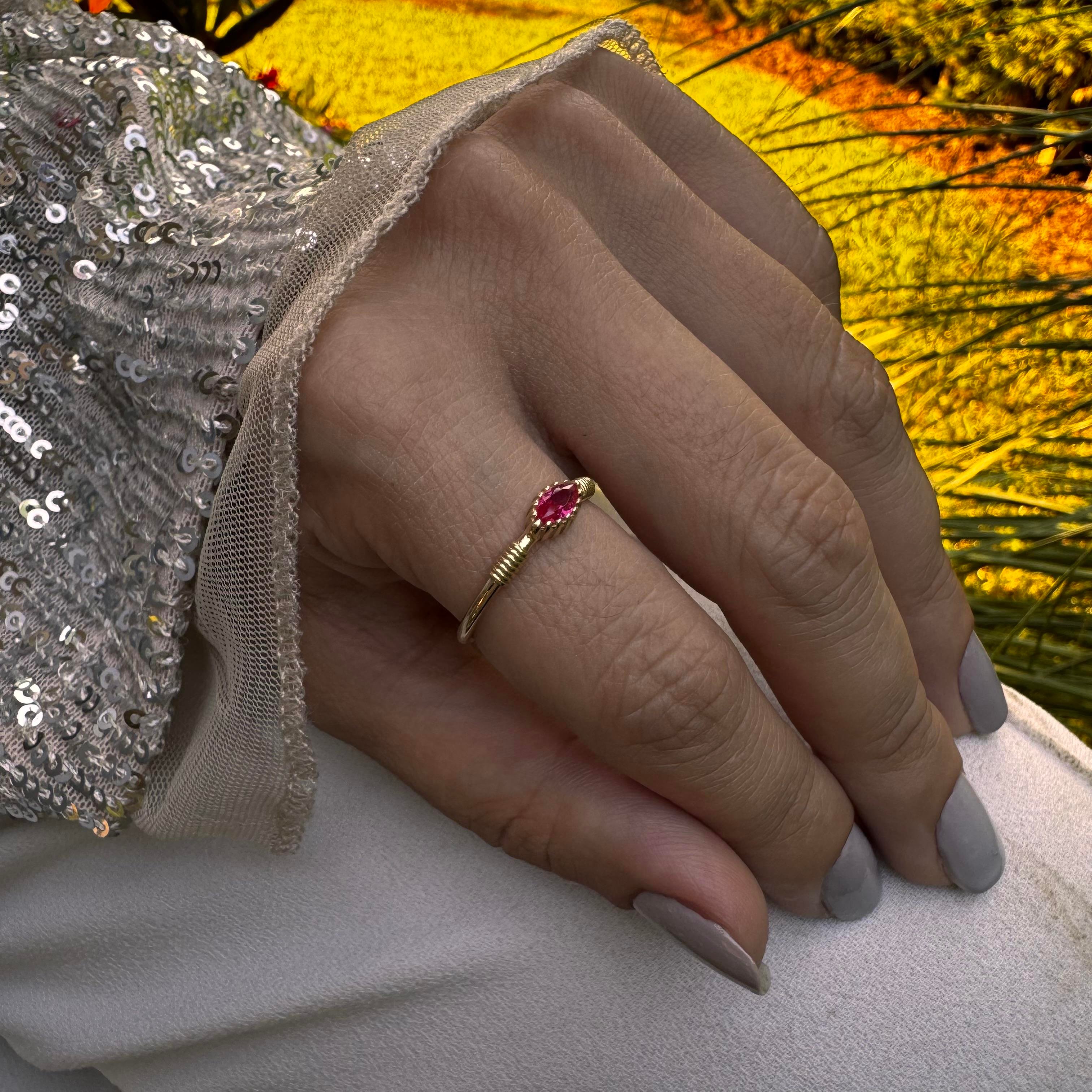 Bu yüzük, sadece bir mücevher değil, aynı zamanda bir ifade biçimidir. Fuşya rengi, cesaretin ve tutkunun sembolüdür. Yüzüğün tasarımındaki incelikler ise sahibine zarafet ve asalet katarken, onu özel kılar. Takan kişiye sadece dış güzellik değil, aynı zamanda içsel bir güç ve özgüven de sunar.