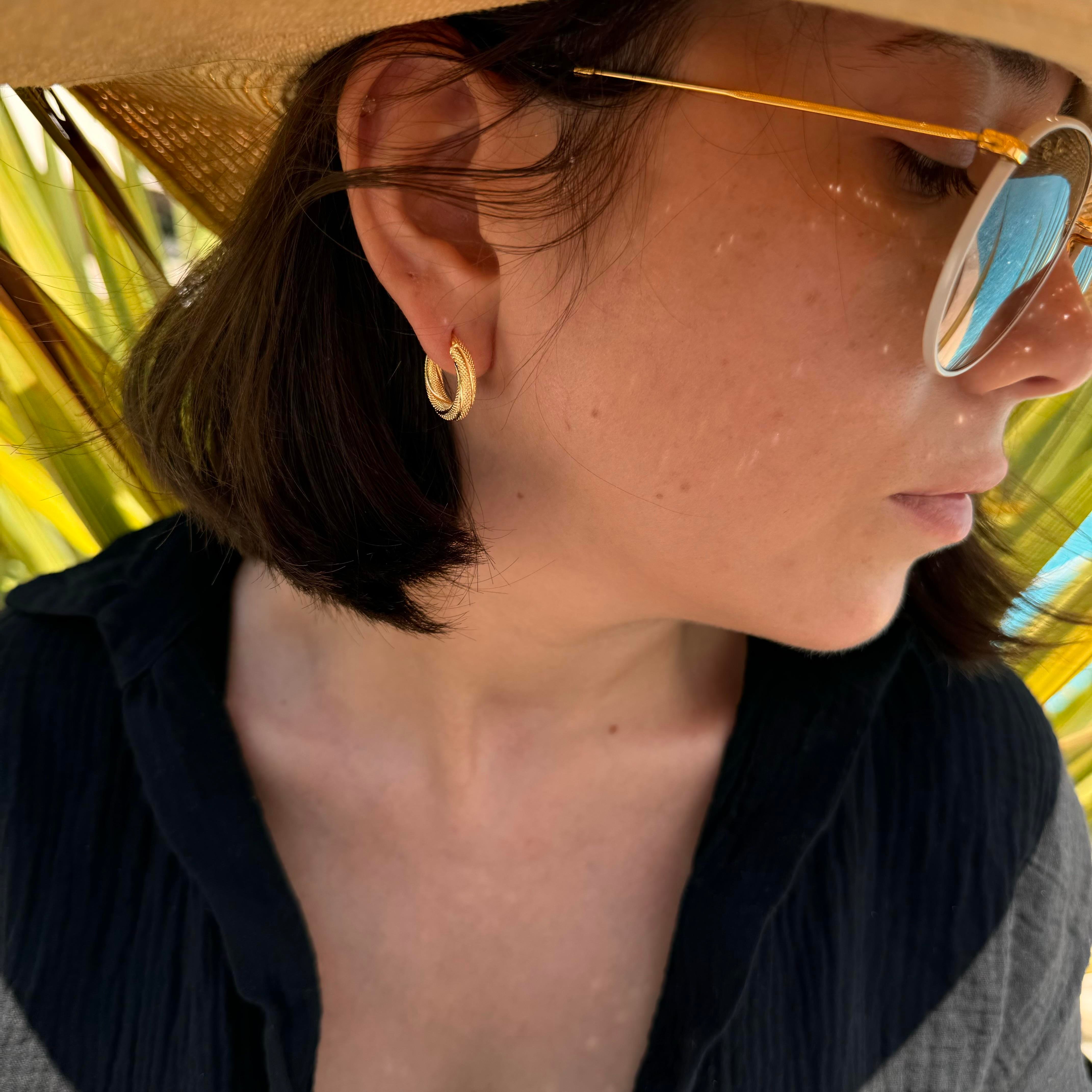 İşlemeli küpeler, ustalıkla işlenmiş detayları ve zarif desenleriyle adeta birer sanat eseridir. Adını, her bir parçanın özenle işlenmiş motiflerinden ve dokularından alır. Bu küpeler, zarafetin ve estetiğin muhteşem bir yansımasıdır.